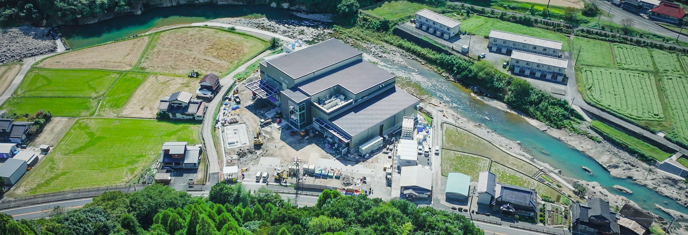6千967.09㎡という敷地面積は、工場として決して大きなものではありませんが、そのぶん2階建の施設に機器を無駄なく配置。生乳の殺菌から、びん詰め・出荷、回収したびんの洗浄まで、グリーンコープのびん牛乳にまつわる多様な作業を、この地で実施します。すぐ間近に山国川が流れるこの場所で、周囲の環境にも配慮した工場づくりが行われているのも大きな特徴です。私たちは山国川とその地域の豊かな自然を守る取り組みも行っていきます。